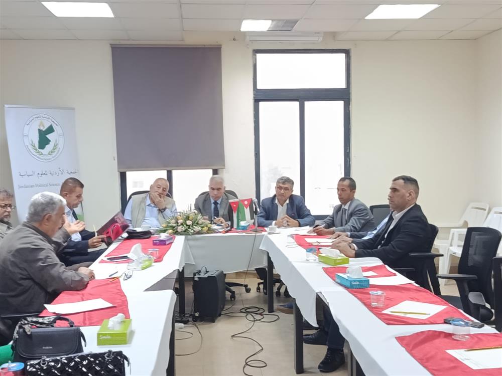 نظّمت الجمعية الأردنية للعلوم السياسية جلسة نقاشية بعنوان "الواقع الحزبي في الأردن: بين الطموح والتجربة"، شارك فيها كلٌّ من سعادة العين الأسبق خالد رمضان، والأمين العام لحزب المدني الديمقراطي المهندس عدنان السواعير، وبحضور رئيس الجمعية الأستاذ الدكتور خالد شنيكات، والأستاذ عبدالكريم المصري (مُيسر الجلسة)، حيث تناولت الجلسة قراءة معمقة لمشهد الحياة الحزبية في الأردن، والعلاقة المتداخلة بين قانوني الأحزاب والانتخاب، إلى جانب استشراف ملامح المرحلة المقبلة من العمل الحزبي والبرلماني في البلاد.